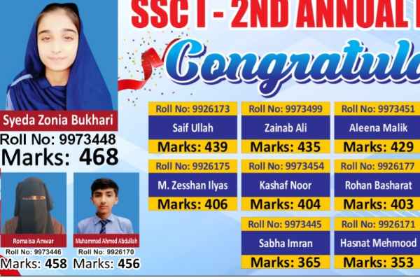 We are extremely delighted to announce the remarkable improvement in our students’ performance in the Federal Board SSC-I Second Annual Examination. This success is a true reflection of the hard work,